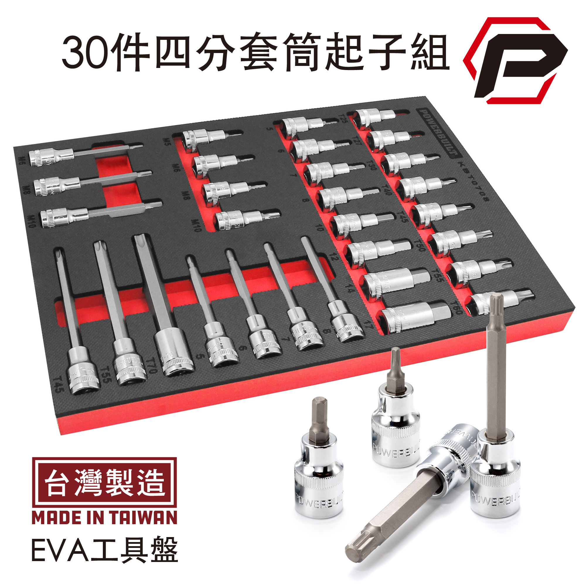 Powerbuilt寶力優工具30件式四分壓配套筒組,產品為台灣製造,通過美國ANSI與歐洲DIN工具標準測試,品質保證,產品兩年保固。套筒本體材質為工業等級鉻釩鋼(CR-V)材質、起子為S2,兼具高硬度以及高韌性特性,透過精密多道熱處理,使壓配套筒可承受高扭力以及擁有使用超長壽命。套筒表面採工業等級鏡面拋光鍍鉻處理,擁有抗刮耐磨以及抗油汙等特性。
